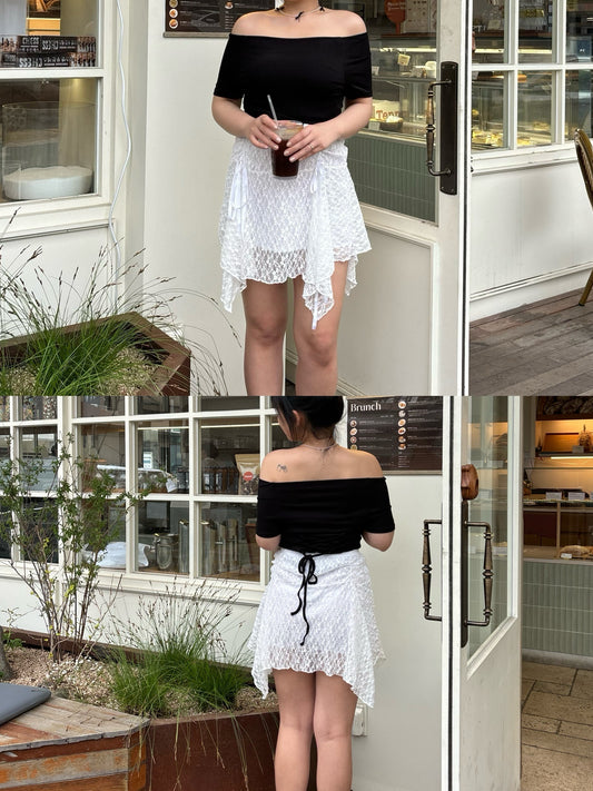 超級仙♡ Floral Embossed Mini Skirt with Ribbon