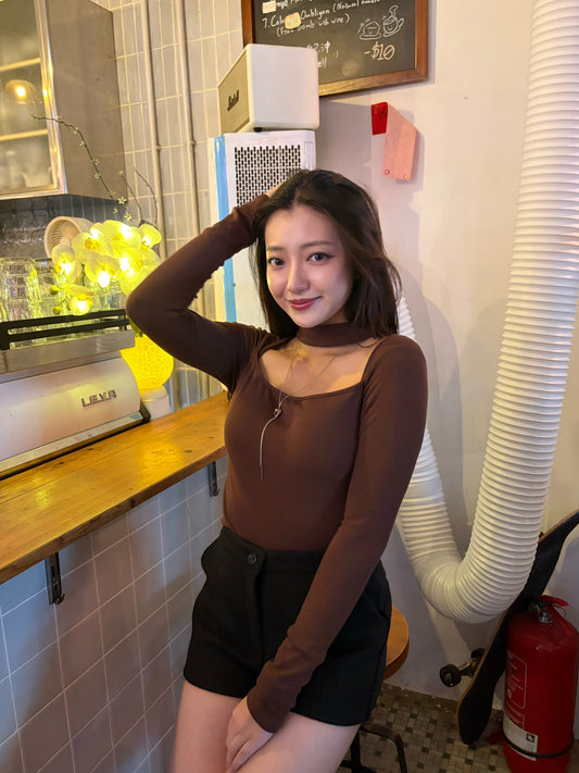 \內有Pad/ 女人味up!! 特色方領箍頸內有絨長袖Bra Top