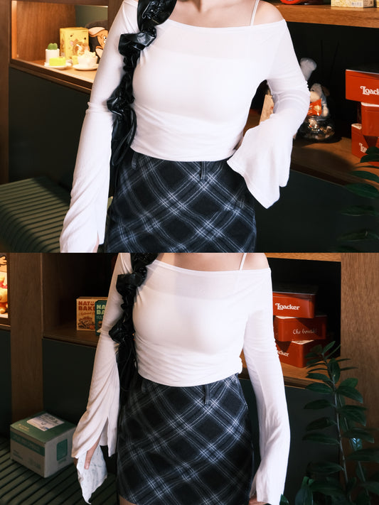 【 秋冬comeback 】大彈性反領吊帶一字膊上衣