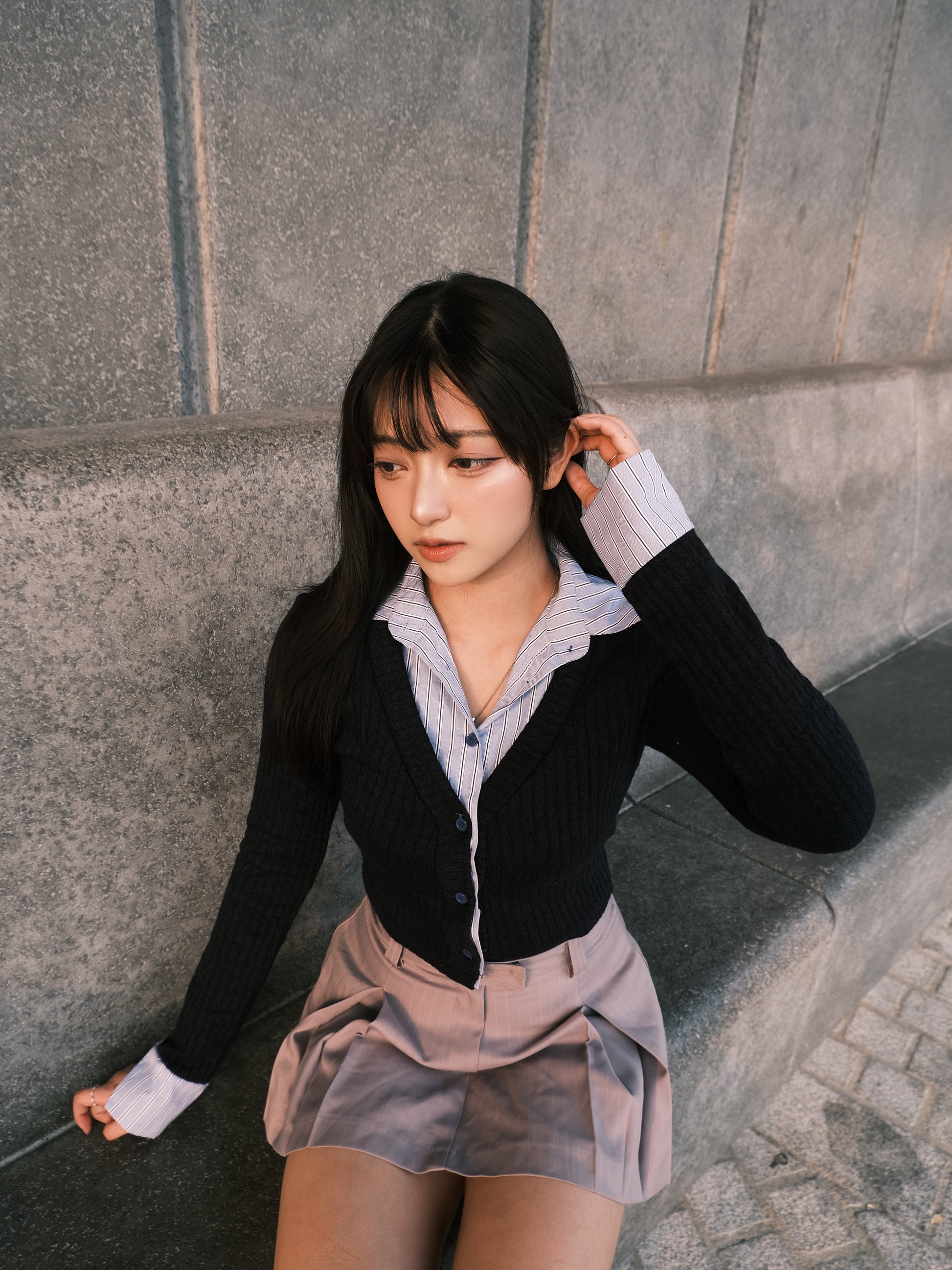 【 秋冬comeback 】假兩件韓國大熱風直紋恤衫x冷衫上衣