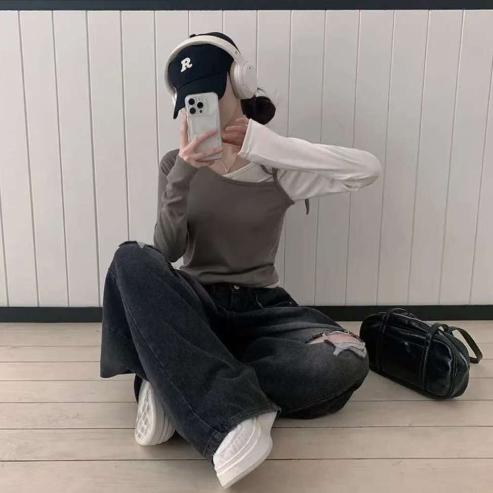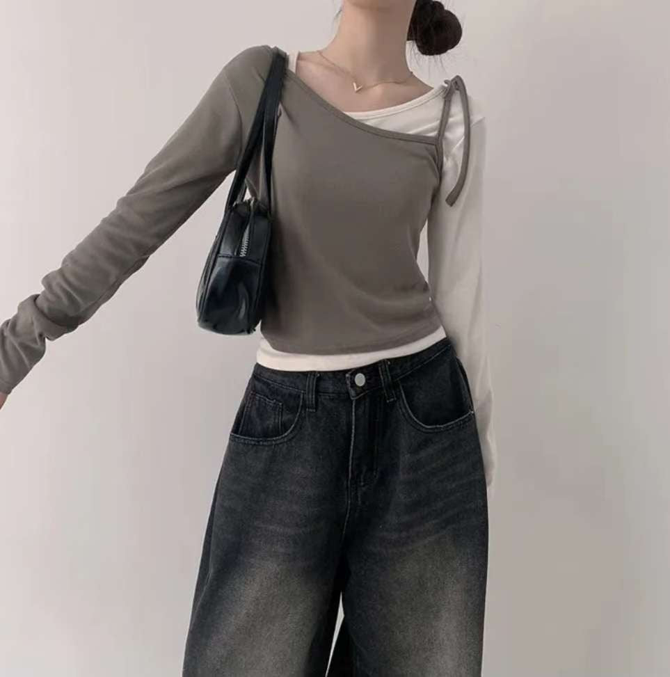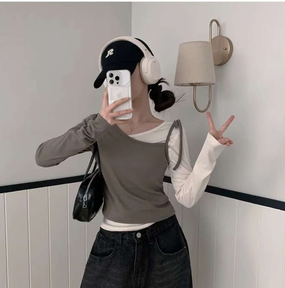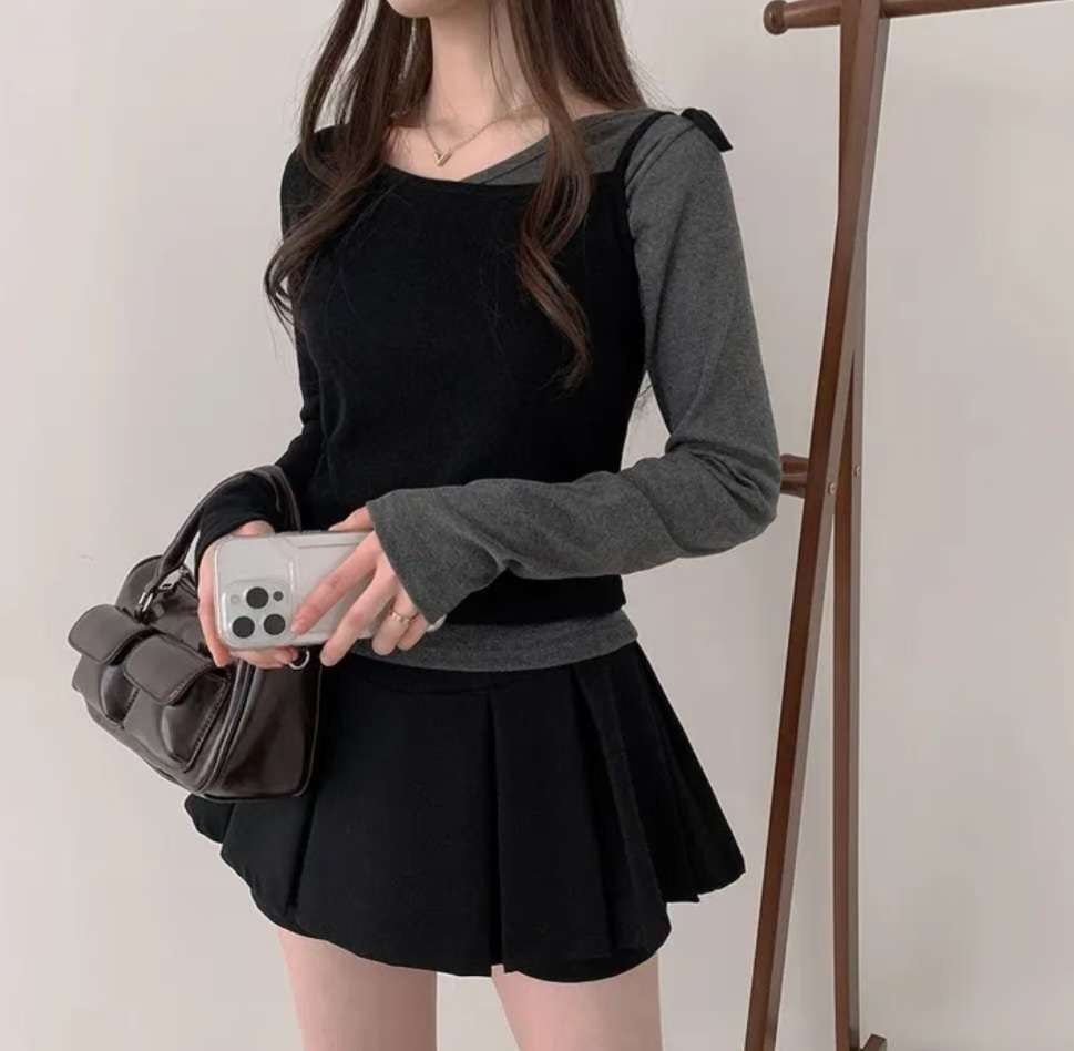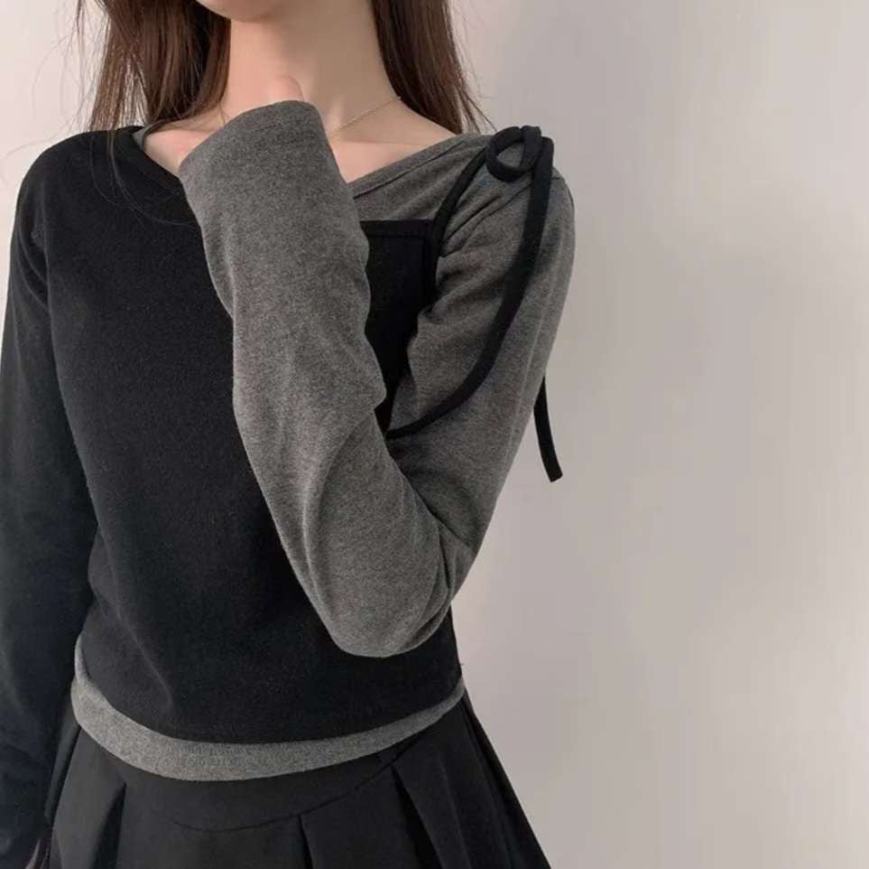 ※預購 拼色假兩件型格上衣