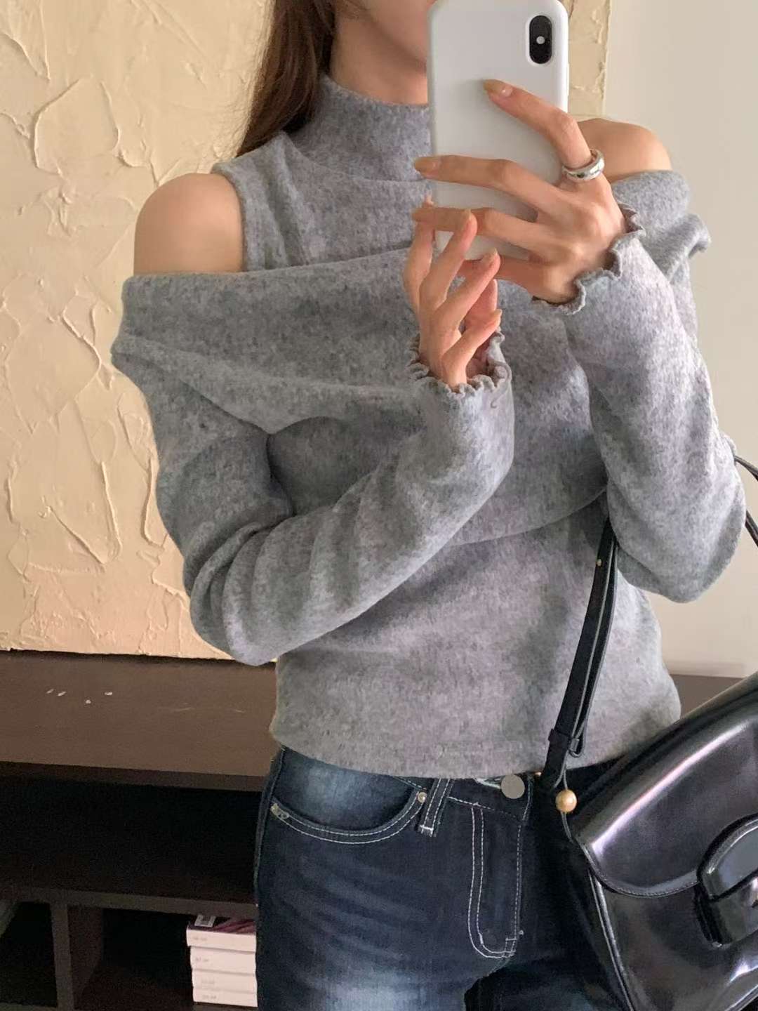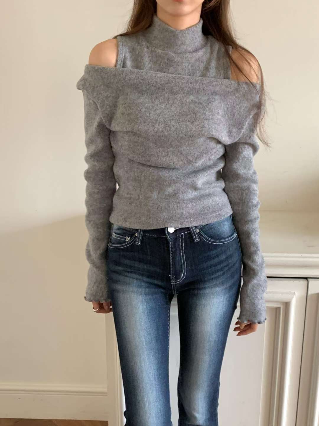 ※預購 保暖絨毛款高領露膊上衣
