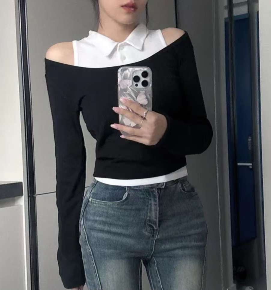 ※預購 超美!!🔥 polo領假兩件露膊上衣