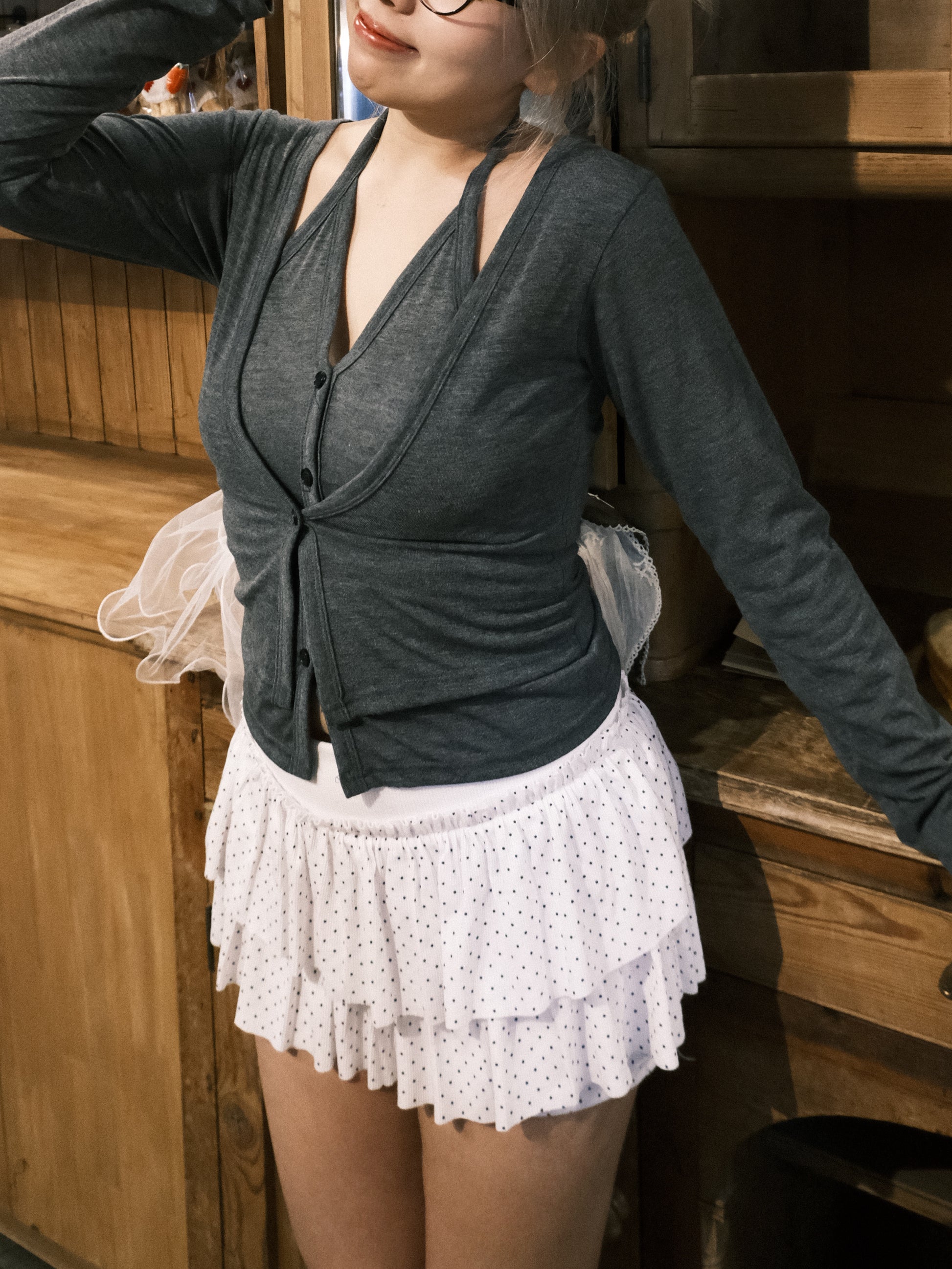 ‹KR 19› 棉質假兩件掛頸V領小性感上衣