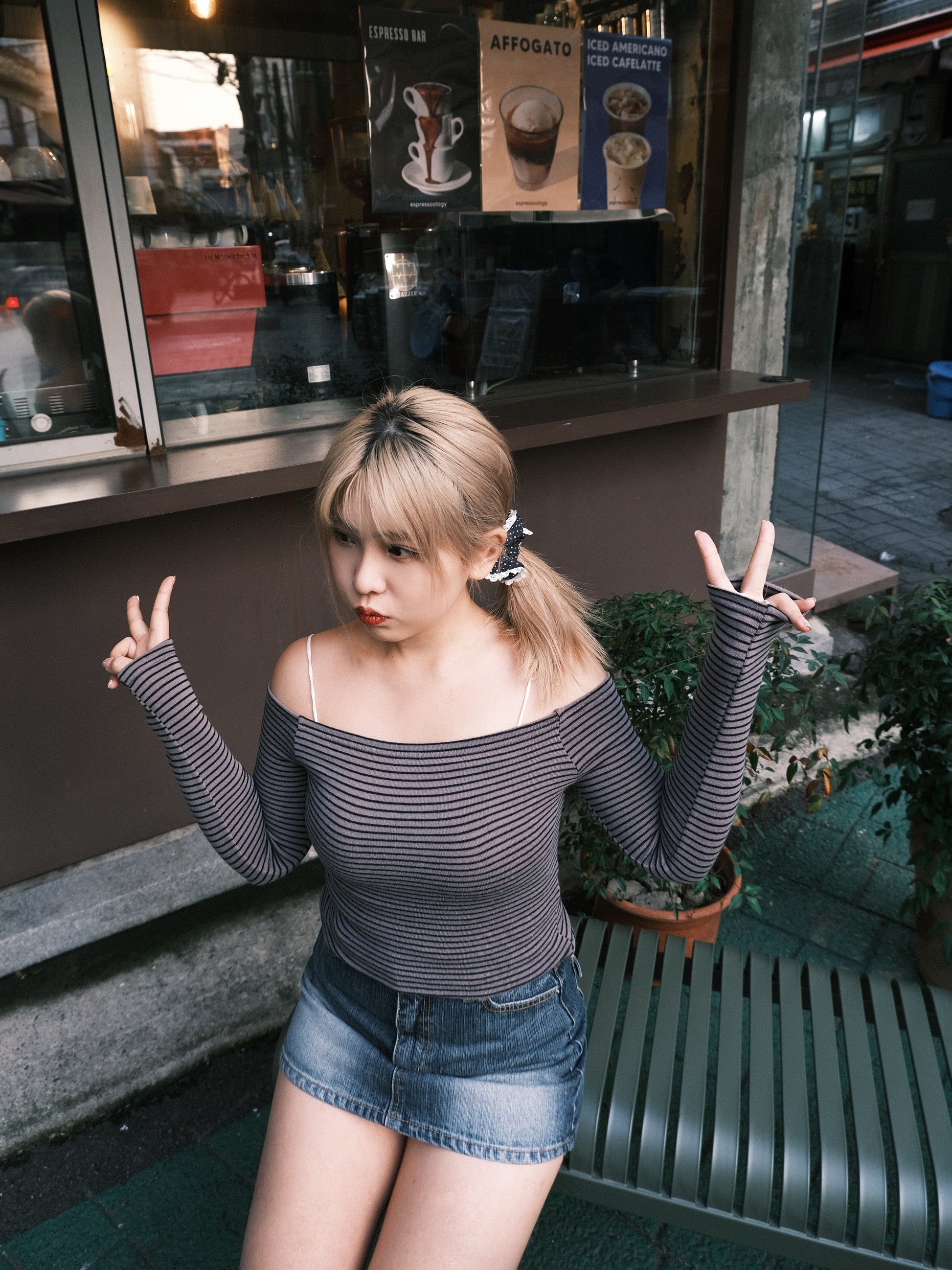 ‹ KR20 › 大彈性!!內有毛毛保暖親膚間條一字膊上衣