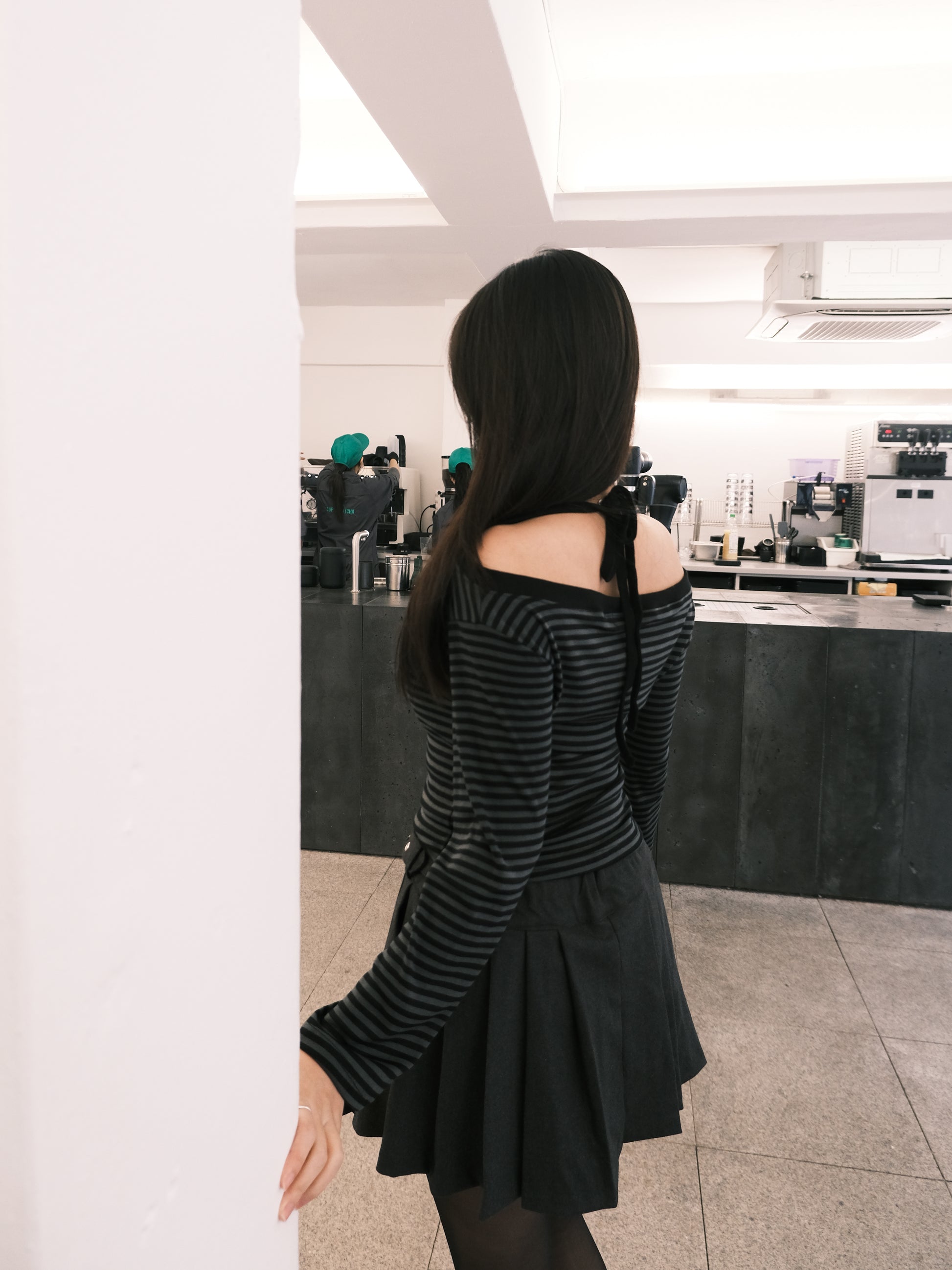 ‹KR21› 寬鬆舒適間條掛頸上衣