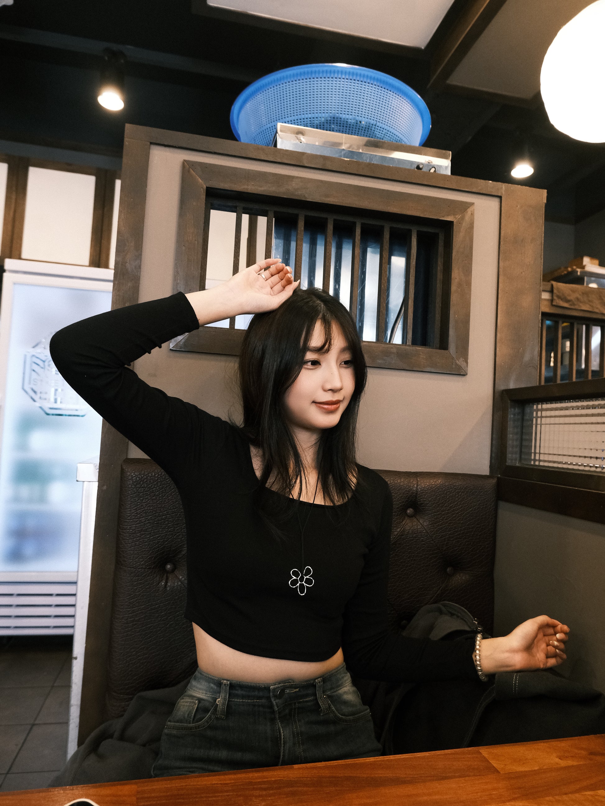 ‹KR 19› 必須包色吧!! 白色不透雙層短身方領長袖上衣